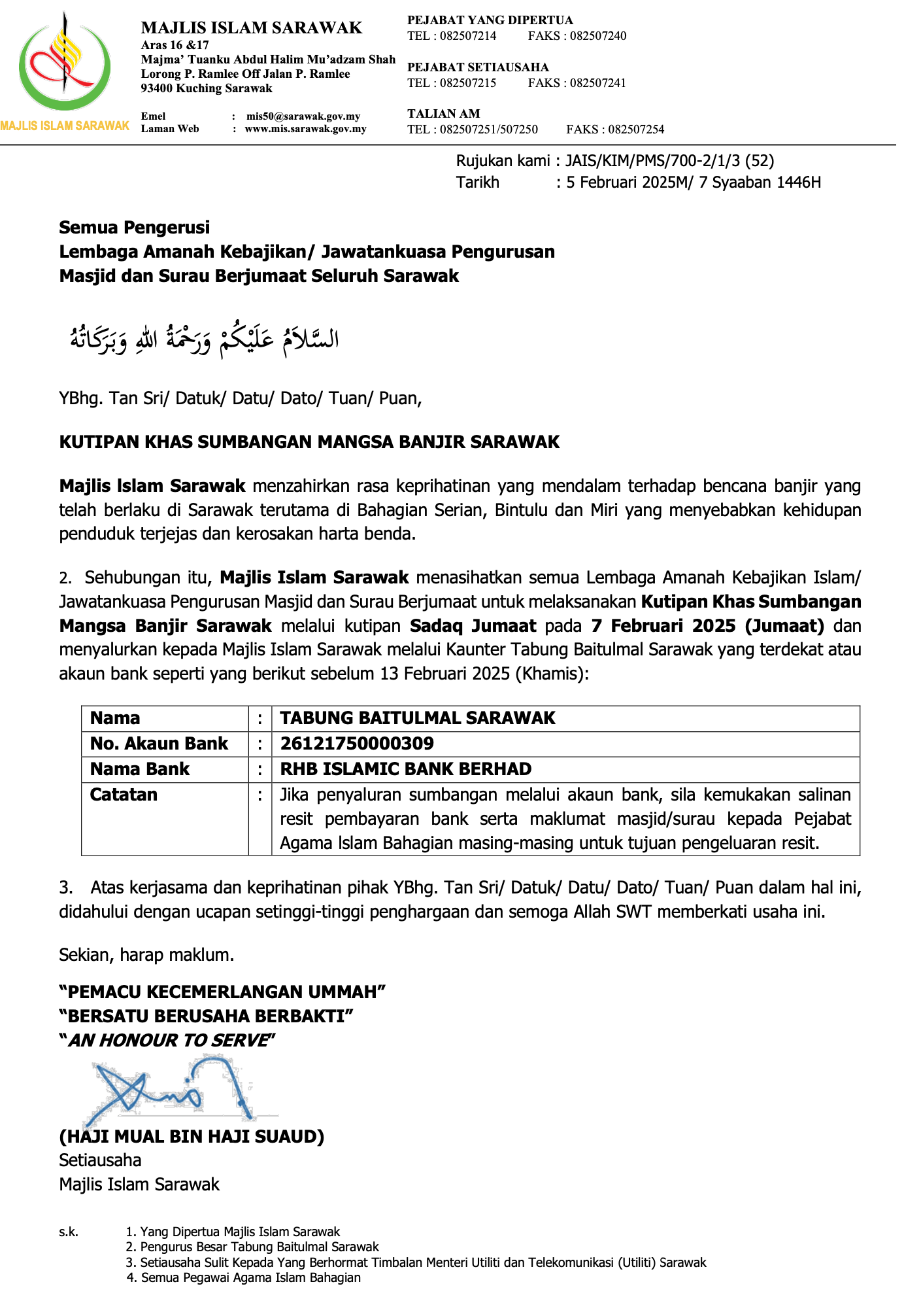 Pekeliling Kutipan Khas Sumbangan Mangsa Banjir Sarawak
